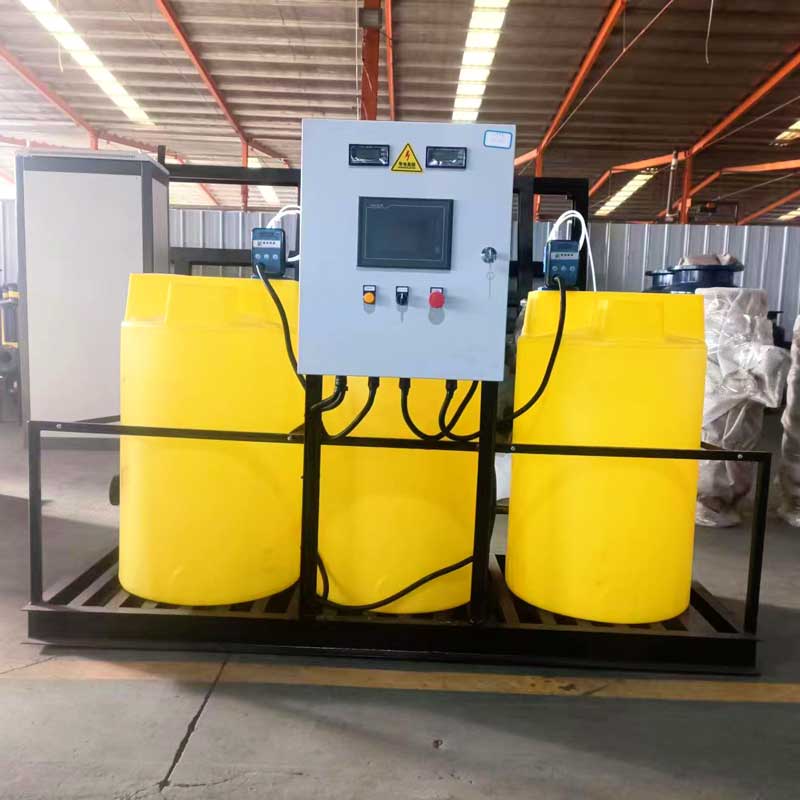 一體化加藥裝置是集藥劑制備與投配于一體的投藥裝置,由溶液攪拌桶、藥劑輸送泵計(jì)量設(shè)備及操作平臺(tái)組成,可向重力管道或壓力管道內(nèi)(如管道混合器)投藥。